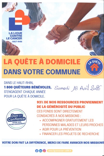 Lundi 20 avril 2026 de 13h30 à 16h30 – Place de la mairie 30 rue de l’Ill Lundi 18 mai 2026 de 13h30 à 16h30 – Place de la mairie…