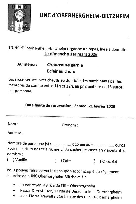 Lundi 16 février 2026 de 12h20 à 16h30 – Place de la mairie 30 rue de l’Ill