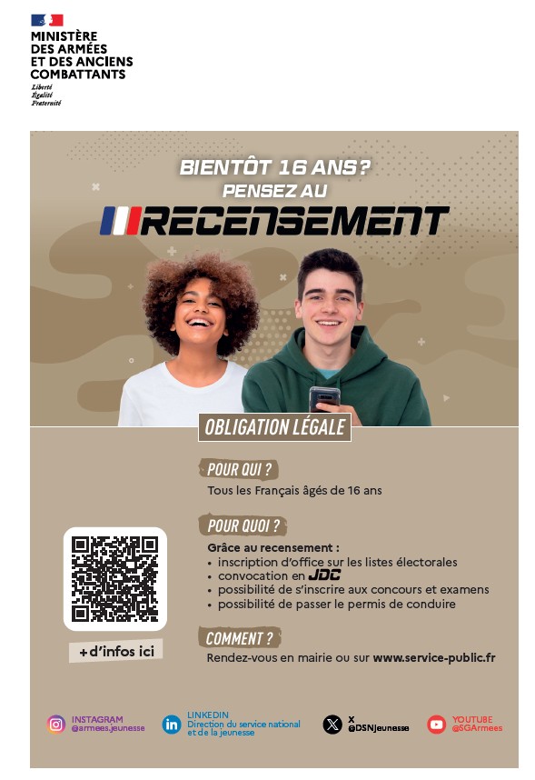 Chaque Français dès 16 ans doit faire le recensement citoyen obligatoire pour ensuite participer à la journée défense et citoyenneté (JDC). S’il ne fait pas ces démarches, il ne peut notamment pas s’inscrire aux examens et concours de l’État (permis de conduire, baccalauréat…) avant 25 ans.